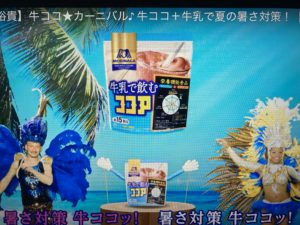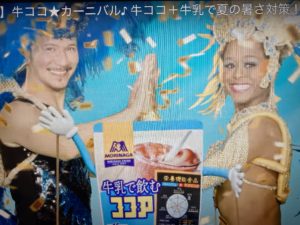 6月1日OA Web CM出演【森永ココア】 牛乳で飲むココアさ対策牛ココサンバ」篇(字幕付き)「 牛乳で飲むココア:「牛ココ★カーニバル〜夏の暑さには牛ココとサンバ〜」編にサンバダンサー&女子サンバダンサーの2名が出演 ※声の出演:梶裕貴さん