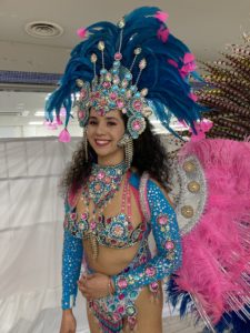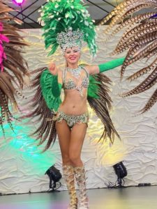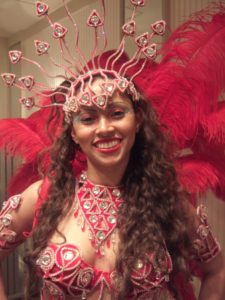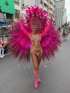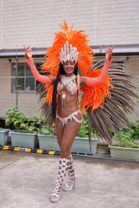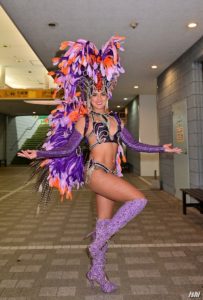 ブラジル人サンバダンサー ダンサー紹介(ソロ) 在日のブラジル人の華やかでエネルギッシュなサンバダンスをお楽しみ下さい 毎年リオデジャネイロのサンバカーニバルで発表使用されたデザインの衣装をブラジルにオーダー、常に新しい振り付けと衣装で出演しています。豪華な羽とライストーンで彩られたブラジルならではのダンスシーンをお届けします。